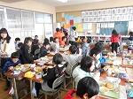 6年生が2~3人にずつ各教室に分かれて、交流しながら給食を食べました。