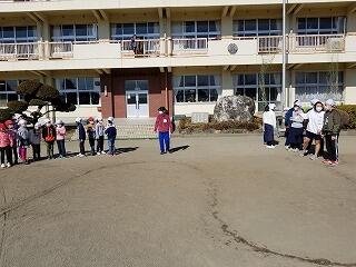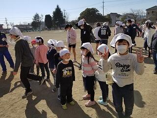 3学期最初のなかよし班遊び、寒さが厳しいですが、冬空の中、楽しく遊んでいました。