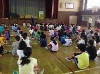2時間目と四小タイムの時間に、体育館で交通安全教室を行いました。栃木警察署の柿本さんが、たくさんの交通に関する物や映像・クイズ等を準備してきてくださり、また、とても楽しい話術で、命を守る大切なお話を聞くことができました。