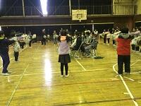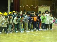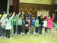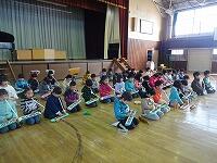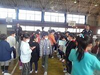 体育館のいすを整理した後、そのまま朝の会を体育館で行いました。
