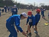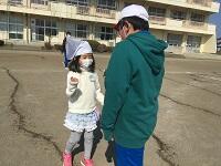 みんな大はしゃぎ! 6年生に追いかけられてうれしそう。
