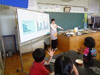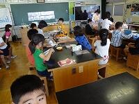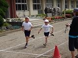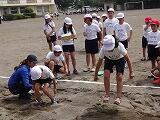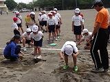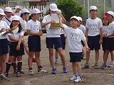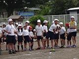 運動会が終わったところですが、児童の体力を計る「体力テスト」を実施しました。高学年児童が低学年の児童を面倒見ながら、各種目を実施して行きます。蒸し暑い日ですが、頑張っています。