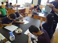 紫色になったところは、よく洗えていなかったところ。どうやって洗うときれいになるか、田中先生が教えてくれました。