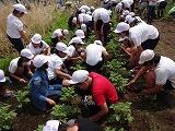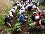 4年生はゴーヤの植え付けでグリーンカーテンを作る作戦です。