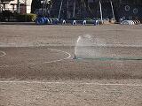 空気の乾燥する日が続き、校庭にほこりが舞ってしまいます。サッカーなどで遊ぶとほこりがもうもうとなります。