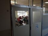 この時期、ドアを開け放しにしておくと、廊下から冷気が入り込み、寒くて仕方ありません。通常、教室のドアは閉められています。一方、曇ガラスのままだと、教室内の様子が廊下側から全く見えません。そこで、1枚だけ、曇ガラスを透明ガラスに交換しました。これで、中の様子を廊下から見ることができます。