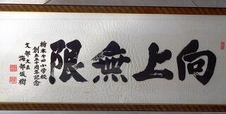 本校の創立50周年に当たる昭和61年6月7日に大々的な記念式典が開かれました。50周年の記念事業の一つに、文部大臣が揮毫した「向上無限」の文字があります。