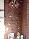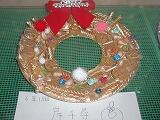 手芸クラブで作った「クリスマスリース」が児童昇降口のショウケースに飾られました。