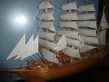 寄贈された帆船は1250×1100×500ミリという大きなガラスケースに収められています。木製の帆船「日本丸」は刑務所の受刑者たちが作成したものとのことで、それを先生が購入されたとのことです。