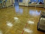 学期末を迎え、恒例の「ワックスかけ」を行いました。教室の机・椅子を廊下に出し、清掃をした後、ワックスを一面に塗りました。児童の下校後、ワックスかけをし、明日の朝まで乾かそうという作戦です。見事にピカピカです。