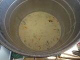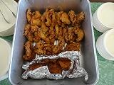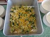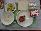 教室にはこんな形で来ます。 フライドチキン、ゆで野菜、白菜のクリームスープ