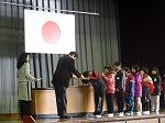 校長先生のお話をいただき、終わりの言葉(遠藤さん)で会は終わり、拍手で退場です。