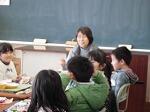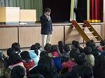 今週はいつもお世話になっている人たちに感謝する週に位置づけ、陰で支えていただいている事務の七田先生や技能員の松本さん、調理員さんなどと一緒に給食を食べたり、放送で感謝の作文を発表したりしています。そして今日は、さわやかタイムに交通指導員さん、安全パトロールさん、九輪草の会の方々をお招きして、感謝の会を開きました。