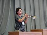 椿先生は音楽が得意で、トランペットで四小の校歌を披露してくれました