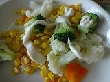 牛乳たっぷりのクリームで煮込み、麺とからめたスパゲティです。ゆで野菜サラダには、ブロッコリー、しゃきしゃきキャベツ、人参が入り、さっぱりとした和風味です。
