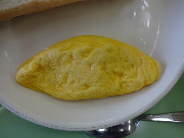 今日はパンの日。食パンは、カルピスクリームをサンドします。おかずは、オムレツ、ミネストローネスープ、野菜炒めです。