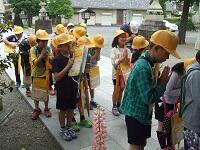 神明宮では学校代表で、先生とこども隊長が、たんけんの無事を祈願しました。