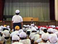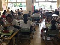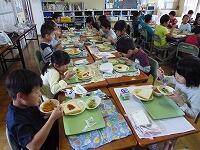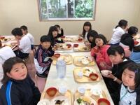 今日は『なかよし給食』がありました。四小でおいしい給食を作ってくださっている調理員さんたちや違う学年の友達と交流しながら、給食を食べました。