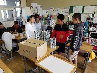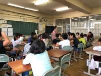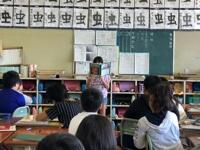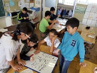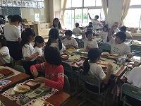 今回は6年生と1年生の交流もありました。6年生は、1年生の小さな机と椅子に座って5年前の自分を思い出していたようです。1年生は大きな机と椅子に、「さすが6年生。すごいな」と!!