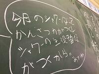 朝の黒板のテーマは「なぜ今日のシャワーをやるのか」でした。