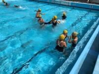 もっと長く、速く、きれいに泳げるようになるために教えながら自分の泳ぎを確認している様子が見られました。
