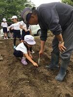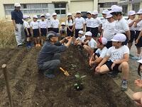 苗を植える間隔や、土のかけ方、肥料の巻き方などを学びました。