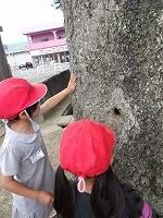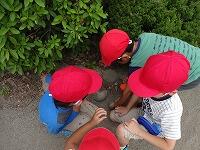 「黒いちょうちょがいたよ。」「木に穴があいているよ。」「だんごむし、かわいいね。」
