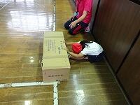 さらに、とび箱の山を手で押して越えます。「よいしょ、よいしょ。」