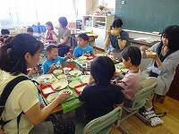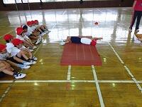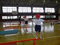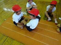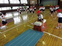 最後は、チャレンジタイム。跳べる人は、跳んでみました。今日の目標は、手をついて飛び乗って、またいで降りればまるなので、すごいですね。