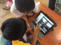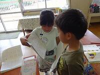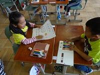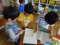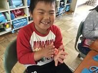 今度は、あいうえおの表をもとに、横読みも頑張っています。「あかさたな・・・・・」おうちでも練習して、覚えてくださいね。