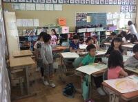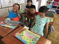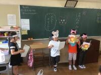 運動会も終わり、教室には障害走で使った「珍獣(子ども達が描きました。)」が飾られています。