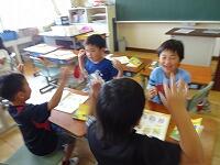 学活では、手洗いの仕方をVTRを使って練習しました。手にはばい菌がついていることが実感できました。手だけでく、梅雨の時期でべとべとするので、毎日おふろに入って、きれいな体で過ごしたいですね。