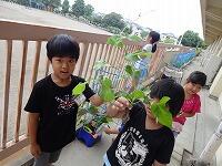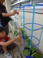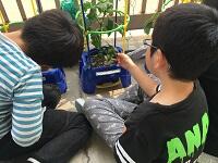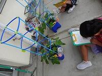 今日は、理科の授業で育てている、ゴーヤとヘチマの植え替えを行いました。