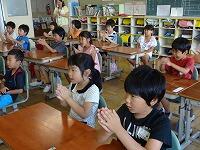 大人の前でも、堂々と話す、菊池学級の6年生たち。