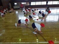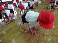 まずは、「かえるさんになあれ。」腕の力をつけることが大切ですね。
