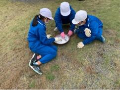1日目、午後の活動は、ビーチコーミングです。自然の家下の玉田海岸で、海岸に打ち上げられた漂着物の収集や観察を行いました。貝がらを拾いました。海岸には、ごみもたくさんあり、拾いました。その後、拾った貝がらやプラスチックごみで、プラごみアートを行いました。5年生は、環境をテーマに総合的な学習の時間で学習しています。その一環の活動です。