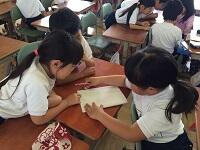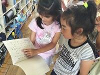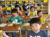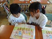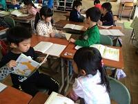 週末は家読の課題がでます。みんな図書の先生のお話をよく聞いて、読みたい本をじっくり選んでいました。