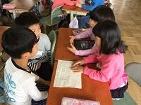 そして、初めての授業参観では、国語で「みんなで声をそろえて音読する」「お手本のように丁寧に書く」「自己紹介をして友達と伝え合う」活動をしました。始めは緊張していましたが、自己