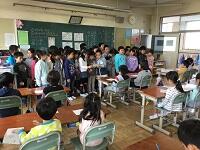 会社(係)の代表が、いつものように1日のめあてをクラスのみんなに伝え、