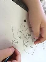 授業参観の道徳では、ホワイトボードを使って、家の人もいっしょに・・・
