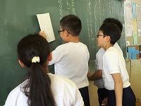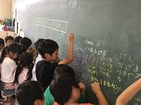 算数の時間は、ノート、iPad、黒板を使って友達同士で・・・