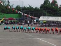 全校種目では、「心をひとつに」のスローガンのもと、力を合わせました。