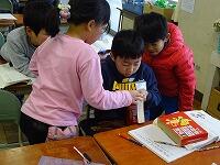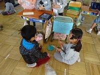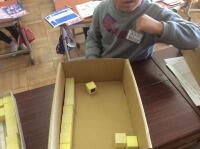 こちらは、段ボールの箱に、正方形のブロックをつめています。