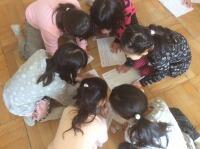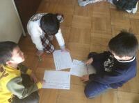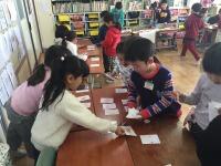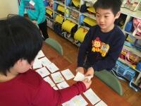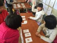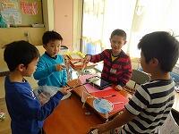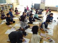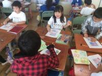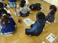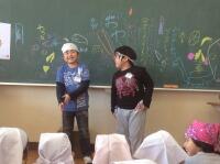 今日の外国語活動は、会話の練習や物語をつくる活動の続きをしました。