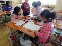 国語の「てがみでしらせよう」という学習で、てがみの下書きをしているところです。