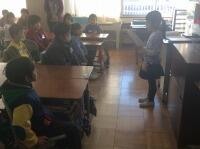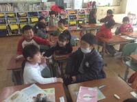 1年生は、2年生と一緒に、交通指導員さんと安全パトロール員さんに、呼びかけで感謝の気持ちを伝えました。