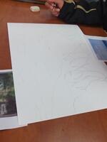 図工で、版画の刷り方を教わりました。