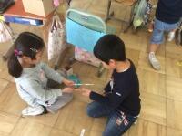 今日は、自分たちだけでおもちゃ作りをしました。