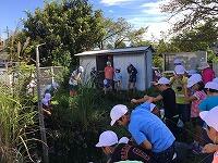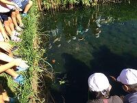5年生は、2年生にアドバイスしながら、生き物が住みやすいビオトープにするためにたくさんのザリガニを釣っていきました。