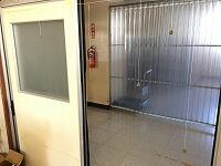 教室の入口に5円玉と50円玉がぶら下がっています。